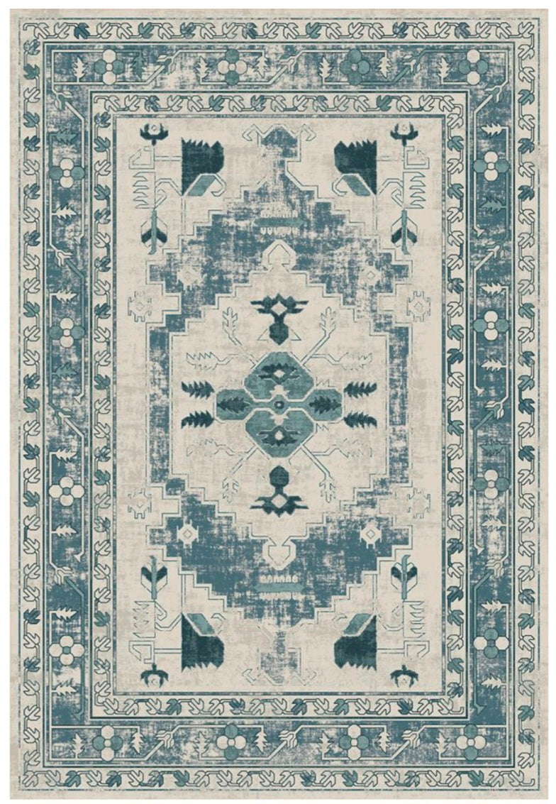 A beautifully woven rug blending soft tones with gentle shades of blue — like the meeting of sky and sand. This design offers a calming, coastal elegance that feels both fresh and timeless. Perfect for bringing a serene touch to any space, its pattern carries a subtle charm that complements natural light, wooden floors, and cozy corners. Whether laid in a living room, bedroom, or sunlit reading nook, this rug invites comfort with every step.